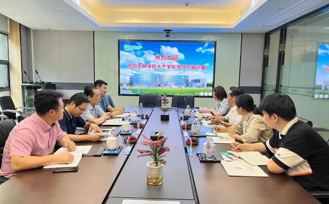 6月19日下午,信陽農林學院水產學院郭旭升院長一行蒞臨回盛水產考察交流。回盛生物副董事長劉潔,回盛水產總經理張翠平、副總經理儲亞玲、水產項目研發主任張運超等出席座談。