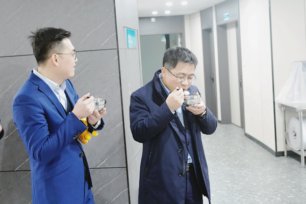 元宵佳節,一碗湯圓必不可少。隨著一碗碗熱騰騰的湯圓出鍋,公司董事長張衛元、首席顧問李名家及公司高管、專家老師與大家共同端起湯圓,品嘗新年伊始的甜蜜,也寓意著開啟公司新年新征程的遠航。“元宵味道不錯,大家一定要多品嘗幾碗”,張衛元董事長笑著說道。“天氣寒冷,湯圓沁人心脾,感受到了濃濃的暖意!”參與品元宵的同事們說。